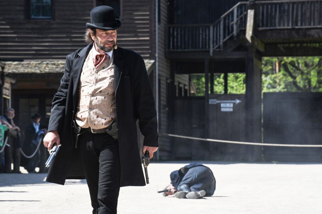 Wir haben interessante Storys aus der Zeit des Wilden Westens aufgearbeitet und bringen bekannte Western Blockbuster auf die Showfläche. Zu den Mitwirkenden gehören u.a. Stuntmen, Schauspieler, Special Effect Spezialisten und Stuntreiter.